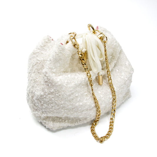 Il tessuto è prezioso, elaborato e al tempo stesso leggerissimo e luminoso.