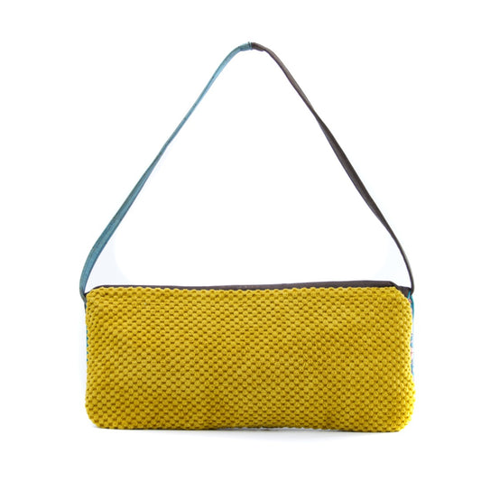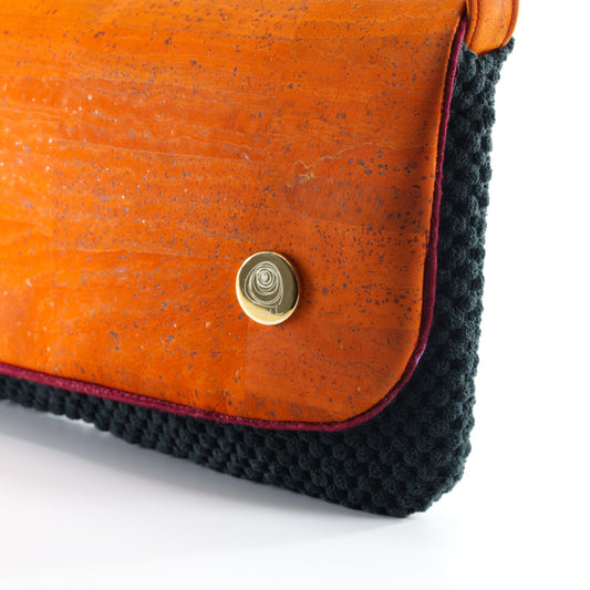 Una baguette bag leggera, chic e sfiziosa. Velluto operato, sughero arancio e stupenda fodera floreale. Per essere decisamente originali!