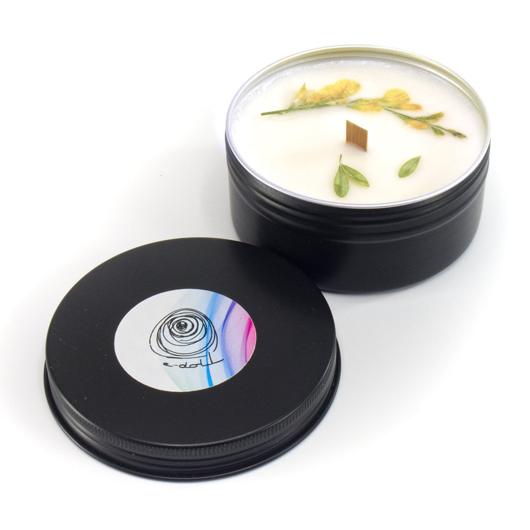 Cera di Soia, Essenza di Ginestra, fiore di Ginestra, Stoppino in legno.
