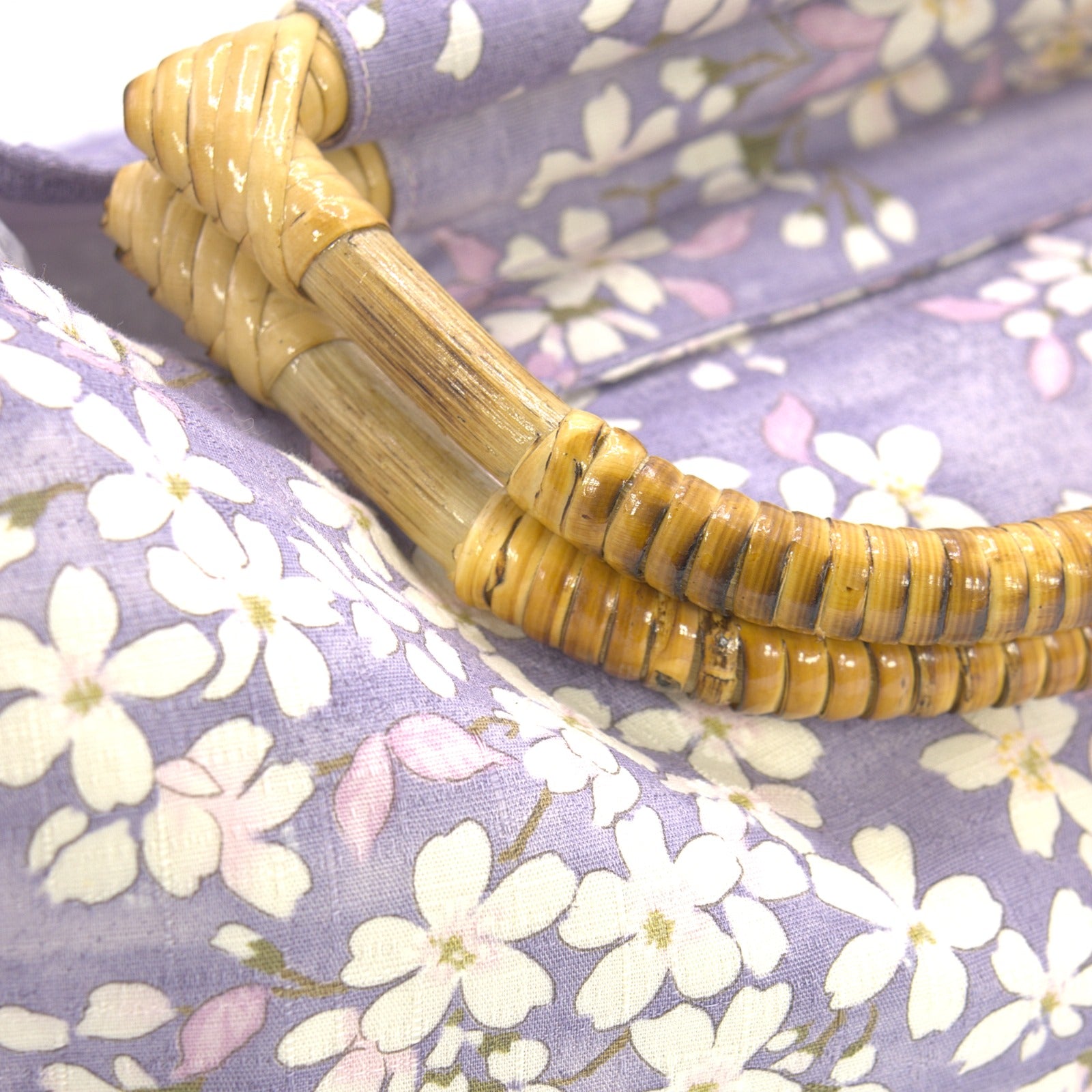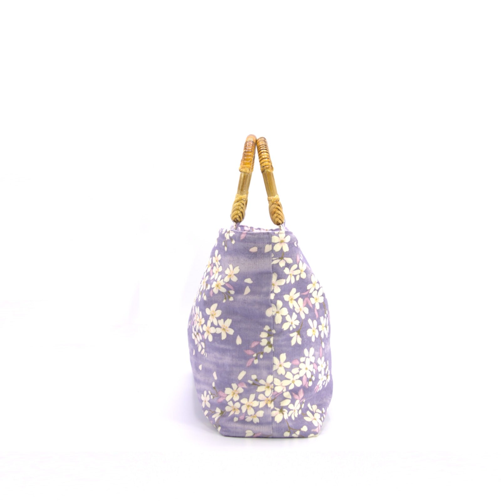 Handly bag di grandi dimensioni, elegante e raffinata. E' realizzata in un prezioso tessuto in cotone giapponese dove sboccia una fantasia di fiori di ciliegio su sfondo lilla leggermente imbottito in cotone e soia. Interno foderato in cotone lilla e doppie tascone. Comodi manici in bambù arrotondato. La SAKURA bag non ha chiusura ma è possibile richiedere l'integrazione di bottoni magnetici.